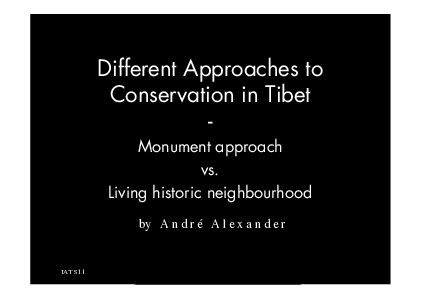This is a presentation by A. Alexander as part of the report by the official Standing Committee for the Study of the Tibetan Architectural Heritage and Mural Art of the International Association for Tibetan Studies (IATS) for the plenary session of IATS 11 in Bonn Königswinter 2006.