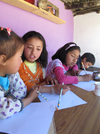 In 2013 THF/LOTI organised a story telling event for the Leh Old Town children at Lala’s café gallery. ‘The House of Tashi Tsering’ by Pimpim de Azevedo was narrated by Stanzin Dolkar and afterwards the children made drawings of they dream house and their paintings were exhibited in the café.
